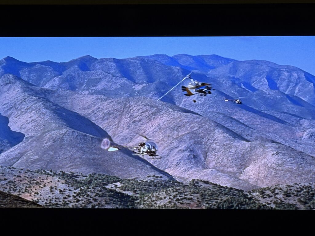Who can forget the incredible midpoint helicopter chase? It’s pretty thrilling stuff, set to John Barry’s Bond needle drop when he does something thrilling.