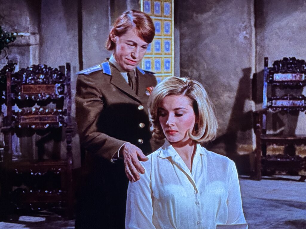 The other major action set-piece is a direct, nearly frame for frame ripoff of the plane sequence in Alfred Hitchcock’s North by Northwest (1959). Just like that Hitchcock film does most things better than this outing, it especially does its version of the set-piece better too. The plane diving Cary Grant is so iconic that if you are going to go there and emulate it only four years later (if ever!) you better bring something good to add to it. This film, directed by series mainstay Terrance Young, feels a poor imitation by comparison. I don’t think Terrance Young is a very good action director, and that is born out by all of his Bond outings being light on action and feeling a bit slow. He has a sort of workman quality to his directorial efforts, a studio man and not a singular vision (like Hitchcock). So if you’re going to come for the best, you better come well prepared and From Russia with Love barely holds a candle to North by Northwest.
