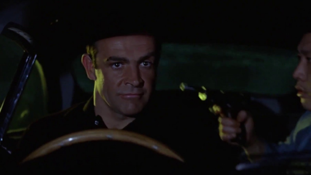 As mentioned in my story section, the action of early 007 films is somewhat limited by its era, notably the reliance on practical effects, and budget. However, unlike the Hitchcock treatment we get in From Russia with Love, this outing really ups the ante in terms of what it means to be a Bond action set-piece. The car chase in the metallurgy facility is a stand out in the series for the blend of humor and creative evasion employed by our hero. We get to see Bond not only rely on his instincts, but also his Q-branch gadgets. Prior to our chase in the factory, we also get Bond utilizing his cars gadgets against a would-be assassin (or rather, assassin with very bad aim).