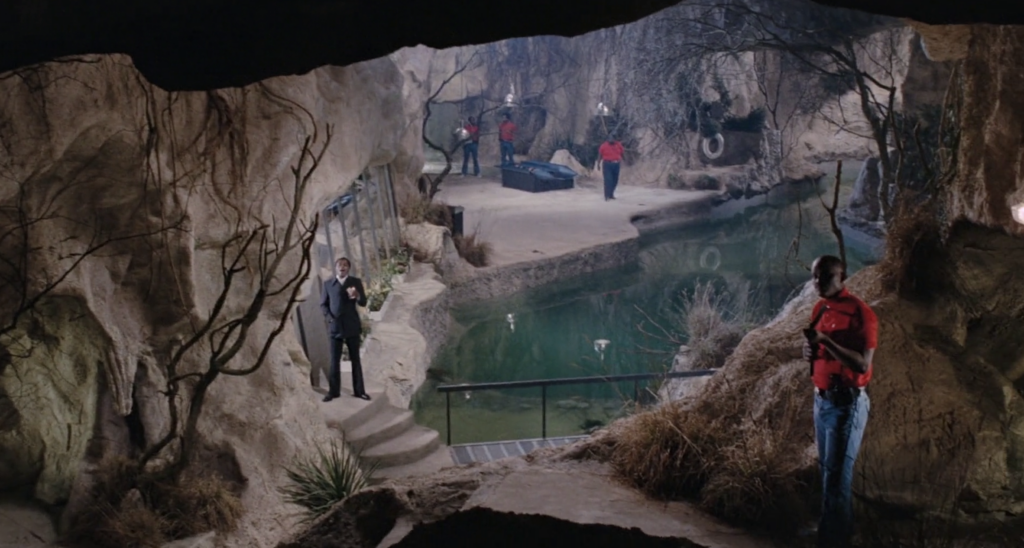 There are numerous small contrivances that make me eye-roll also. Take for instance just how many folks are monitoring for Kananga in New York. Are we to assume every Black person north of 23rd street in Manhattan is on a CB radio to the Filet O’Fish villain lair? How did that cabbie know to be outside the voodoo shop? When did he get to New Orleans? For a ruthless drug cartel, they sure are bad at assassinations and killing; preferring that snakes or gators do the job for them. Yes it makes for compelling action and clever escapes by Bond, but where are the guns? Same thing on the speedboat, you have all these folks just sort of following Bond from cove to cove, with nary a bullet fired. As Bond fleas with Solitaire, he passes one of those voodoo scarecrow turrets, why doesn’t Kananga or his henchmen shoot Bond with that turret when he is in view? It just all feels a bit off, goofy really. I guess Konanga really wanted to show Bond his shark pit (you know, since snakes and crocs couldn’t get the job done right before).