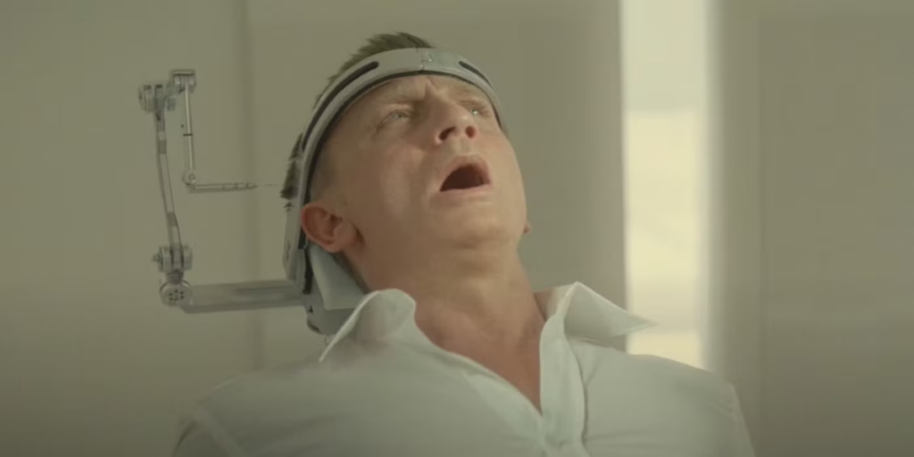 Bond and Madeleine arrive at SPECTRE HQ in the desert, an underground bunker whereby Oberhauser is in charge of Nine Eyes. Yes, Nine Eyes was privately funded by SPECTRE itself, and we learn that Max Denbigh is also an acolyte of Mr. Oberhauser, who will now have access to all the intelligence gathering of the West. If this were our main twist, with the villain reveal using Denbigh as a puppet for profit, it’d be a strong story. But no, in a quest to further tie in the Craig era and build an expansive universe where everything is interconnected like an MCU film, the writers shoe-horned the infamous “Brofeld” plot point and state that not only is Oberhauser Ernest Stavro Blofeld, but he is Bond’s stepbrother and “the architect of all your pain.” Yes we learn SPECTRE and Blofeld were behind all of Bond’s previous deadly encounters, including the Vesper Lynd tragedy up through the events of Skyfall.